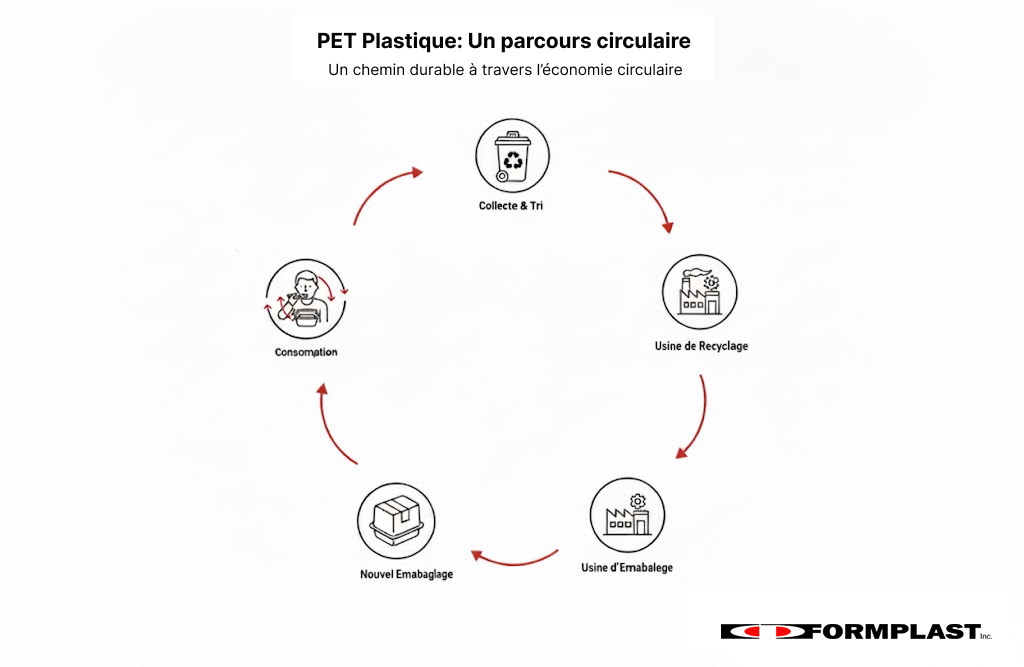 Circularité : Nos contenants alimentaires sont fabriqués à partir de PET recyclé post-consommation, donnant ainsi une seconde vie à des matériaux comme les bouteilles de plastique.